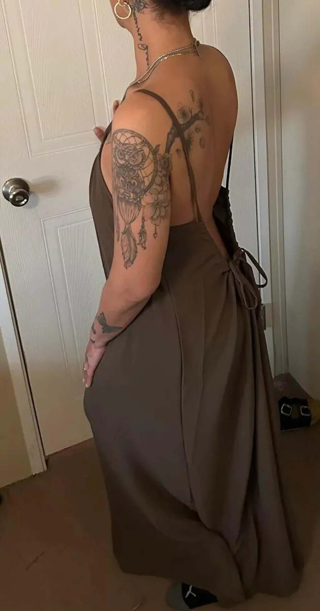 ¿Por qué conformarte con una talla única? Con este diseño de espalda flexible, tú controlas cuánto se ve tu piel. Desde una cobertura sutil hasta una abertura atrevida, es tu vestido, tu estilo, tu impulso de confianza. No hay necesidad de preocuparse por que las correas se resbalen; son ajustables, por lo que cuanto más las ajuste, más cómoda se sentirá su espalda.