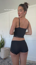 Su diseño de color liso con delicados ribetes de encaje le da un toque suave y femenino. Su corte bajo y sin costuras se adapta a tu cuerpo con suavidad, ofreciendo una ligera elasticidad para un look impecable y discreto bajo cualquier prenda.