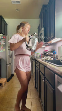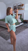 Confeccionado en tejido de punto de grosor moderado, este conjunto ofrece calidez y ventilación para un uso durante todo el año. Los pantalones cortos a juego completan un look de pijama coordinado y sencillo.