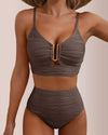 Conjunto de bikini texturizado de cintura alta con abertura en forma de U